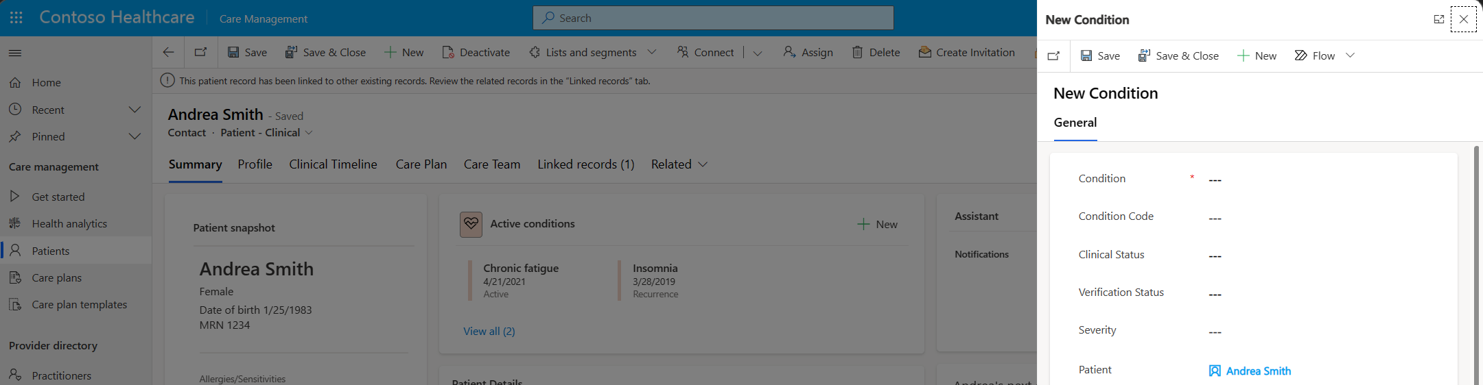 Quando si rimuovono i collegamenti del tipo Primary (Replace By in FHIR) o Inactive (Replaces in FHIR), il record paziente inattivo viene ora riattivato automaticamente in Dataverse. Se i collegamenti vengono aggiornati, eliminati o disattivati, il paziente viene riattivato nel caso in cui non ci siano altri collegamenti che rendono il paziente inattivo.
