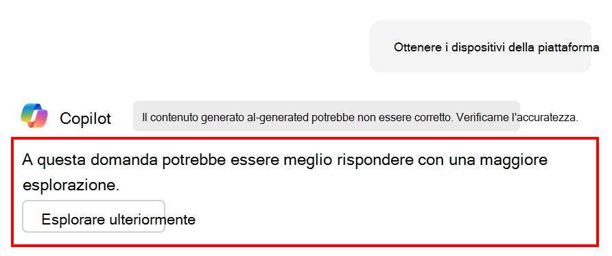 Copilot Chat include tutte le richieste che è possibile usare per esplorare i dati Intune. Nel prompt potrebbe essere visualizzata l'opzione Esplora altre opzioni: