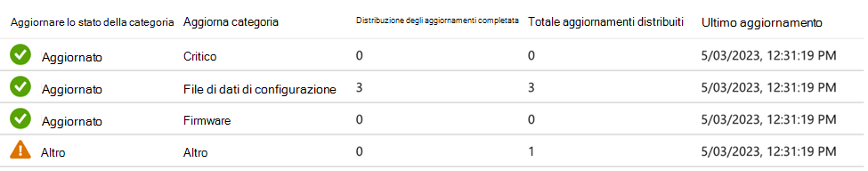 Dopo aver distribuito i criteri di aggiornamento, nell'interfaccia di amministrazione Intune è possibile usare la funzionalità di creazione di report per controllare lo stato degli aggiornamenti.