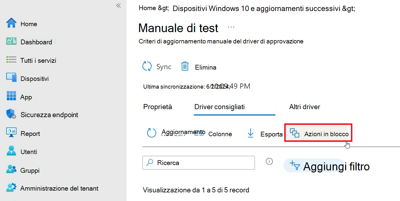 Nella pagina Driver Aggiornamenti selezionare Azioni bulk.
