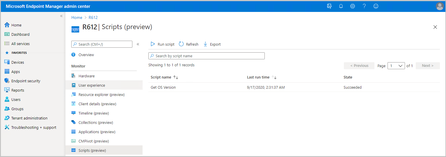 Per ulteriori informazioni sull'esecuzione di script nei dispositivi collegati al tenant, vedere Collegamento del tenant: esecuzione di script dall'interfaccia di amministrazione.