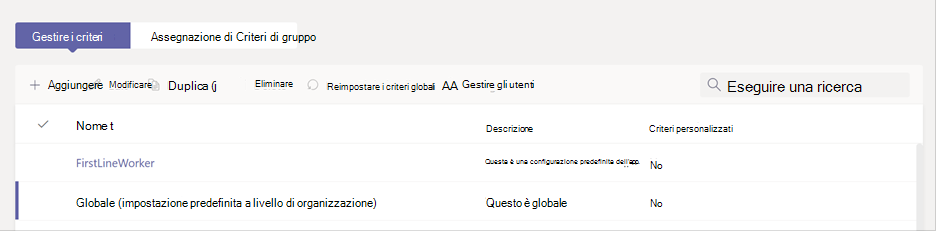 I criteri di aggiornamento di Teams vengono usati per gestire gli utenti di Teams e office preview che possono vedere le funzionalità in anteprima o in versione di anteprima nell'app Teams. Criteri di aggiornamento di Teams Anteprima pubblica di Teams