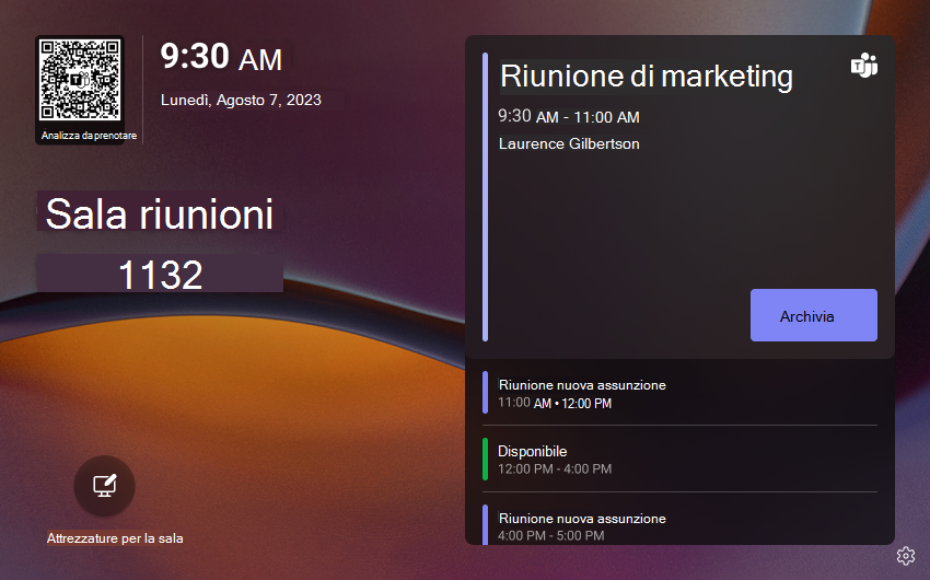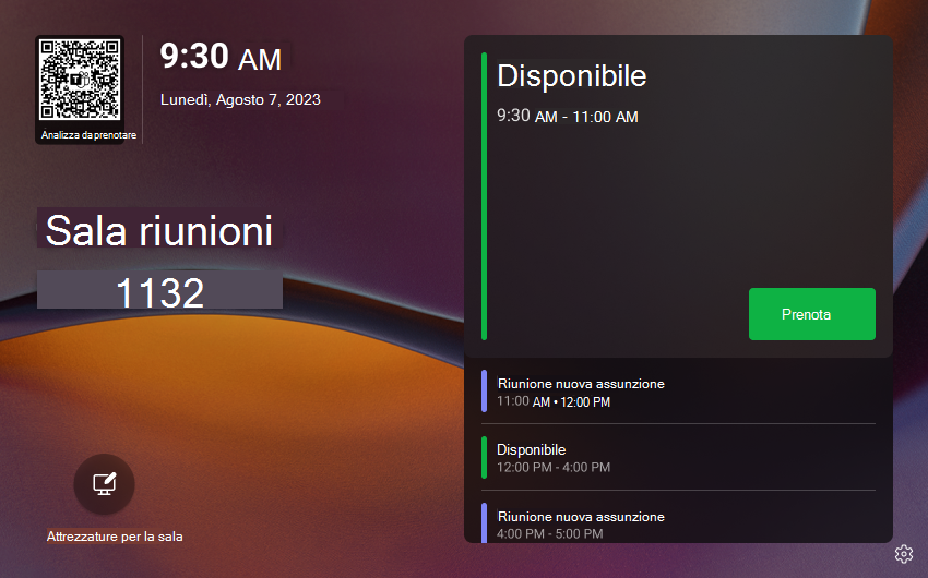 Per gli spazi senza un dispositivo della sala, è possibile acquistare la licenza dispositivo condiviso di Teams a un prezzo conveniente fatturato ogni mese. Questa licenza consente di accedere a molte delle funzionalità dei pannelli teams, come la prenotazione di codici a matrice e la versione automatica.