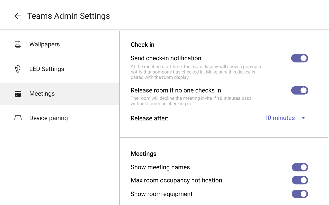 I pannelli Teams offrono una gamma di funzionalità che possono essere personalizzate in base al proprio spazio. Che si tratti di una sala riunioni, di uno spazio per coccolare o persino di una sala come una sala yoga, i pannelli teams possono essere utilizzati in qualsiasi spazio prenotabile. Inoltre, quando decidi su quale Pannello di Teams dispositivo acquistare, non c'è alcuna dipendenza dal marchio del dispositivo all'interno della stanza. È possibile combinare le apparecchiature per offrire la combinazione perfetta per l'organizzazione.