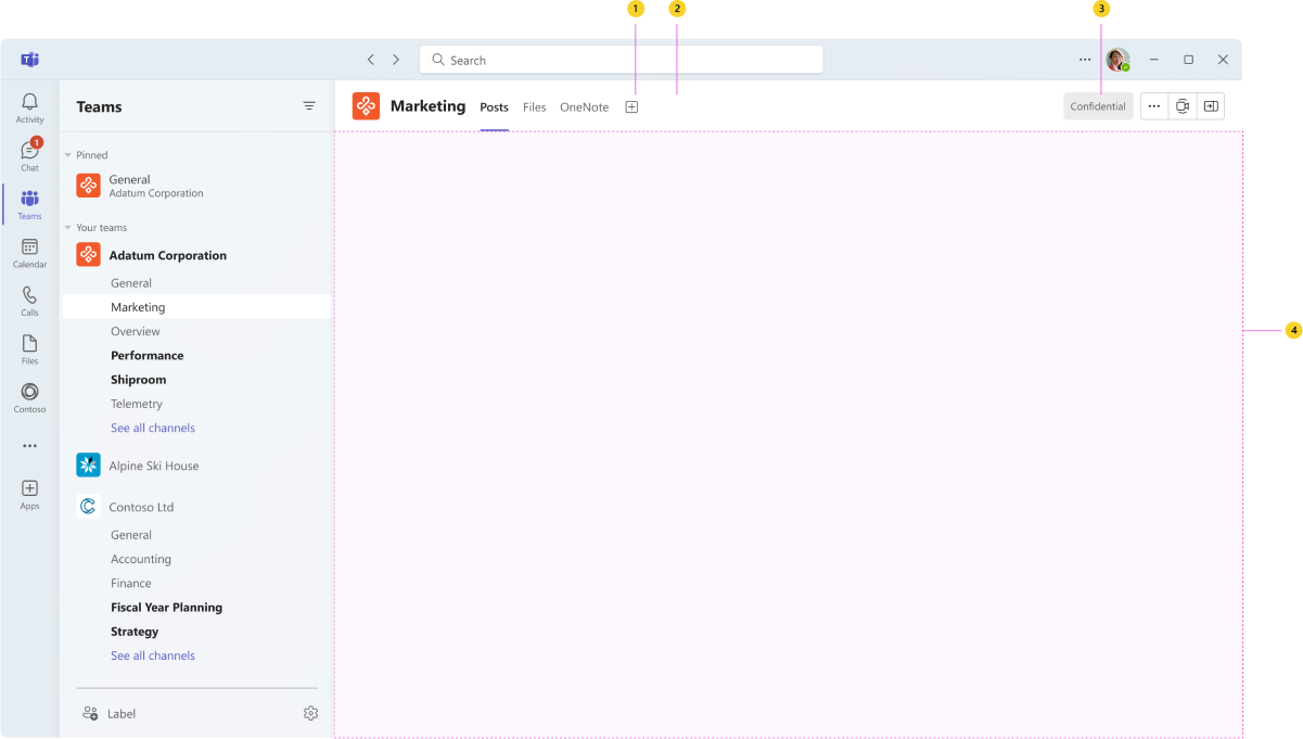 | 2 | Rename: Users can give the tab a name that’s meaningful to the channel, chat, or meeting. |