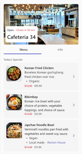 You can use newlines for Adaptive Cards using \r or \n escape sequences for newlines in lists. Formatting is different between the desktop and the mobile versions of Teams for Adaptive Cards. Card-based mentions are supported in web, desktop, and mobile clients. You can use the information masking property to mask specific information, such as password or sensitive information from users within the Adaptive Card Input.Text input element. You can expand the width of an Adaptive Card using the width object. You can enable typeahead support within Adaptive Cards and filter the set of input choices as the user types the input. You can use the msteams property to add the ability to display images in Stageview selectively.
