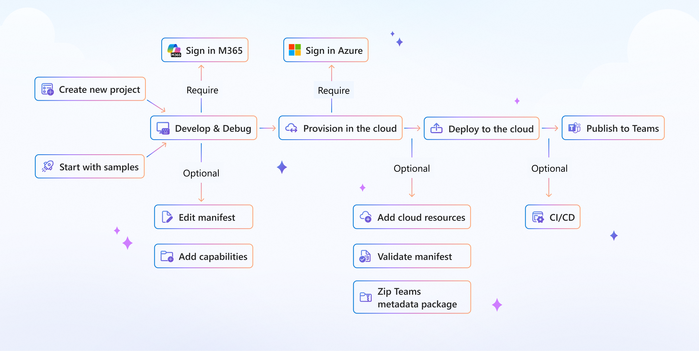 Save time getting started with new Teams agents and apps using the capability-focused templates for tabs, bots, message extensions, and common agent and app scenarios.