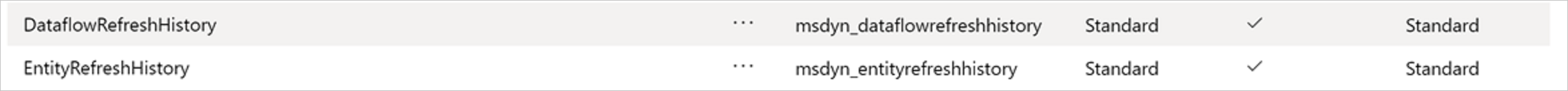 Queste tabelle archiviano la cronologia per almeno gli ultimi 50 aggiornamenti. I record della cronologia degli aggiornamenti precedenti a 90 giorni potrebbero essere rimossi dal sistema. Per usare queste tabelle, è consigliabile usare Power BI per ottenere dati tramite il connettore Dataverse. È anche consigliabile estrarre questi dati in una tabella autogestita se si vuole eseguire un'analisi su un periodo di tempo più lungo.
