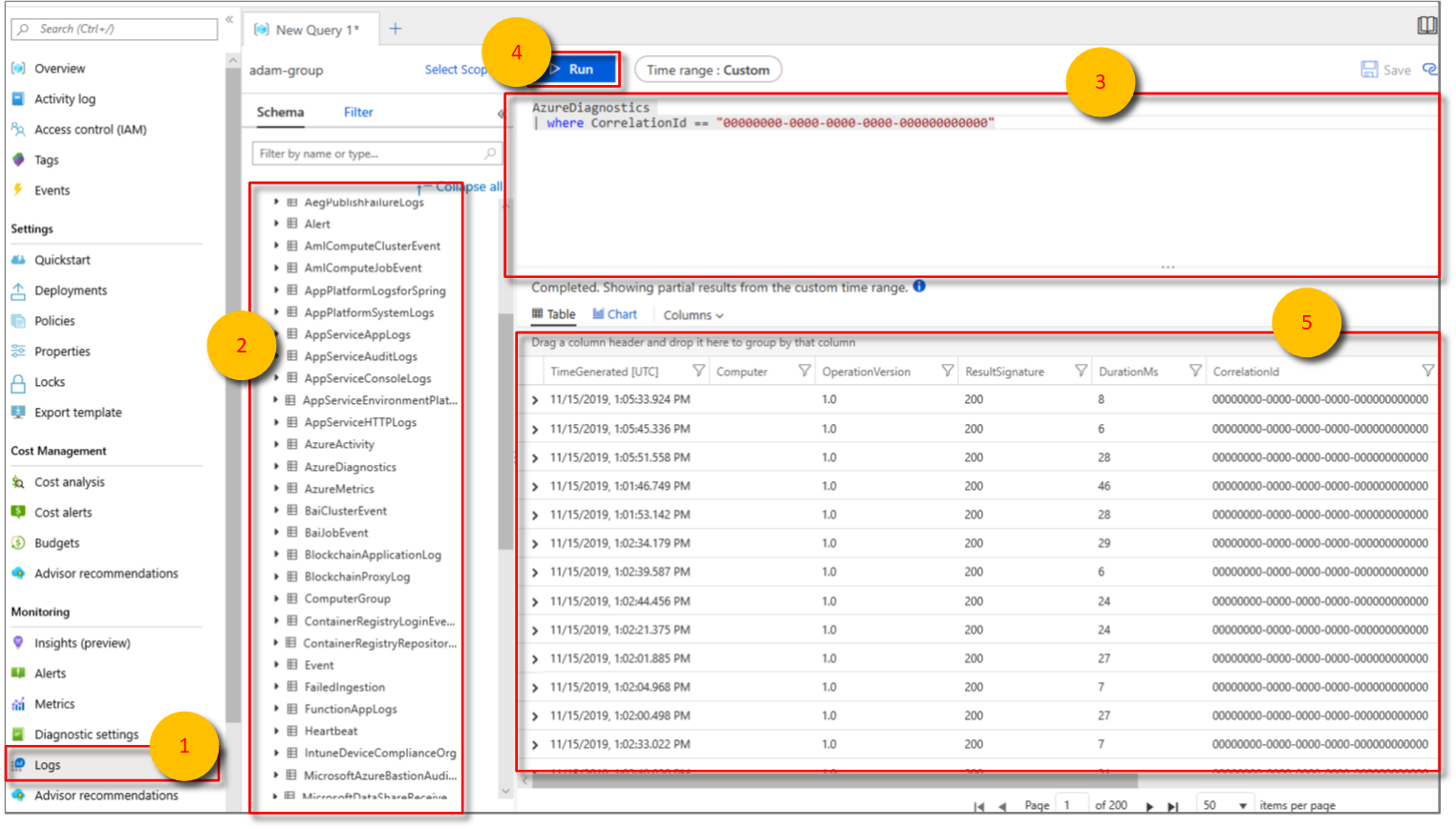 - Esecuzione di query su più cronologie dei log di diagnostica