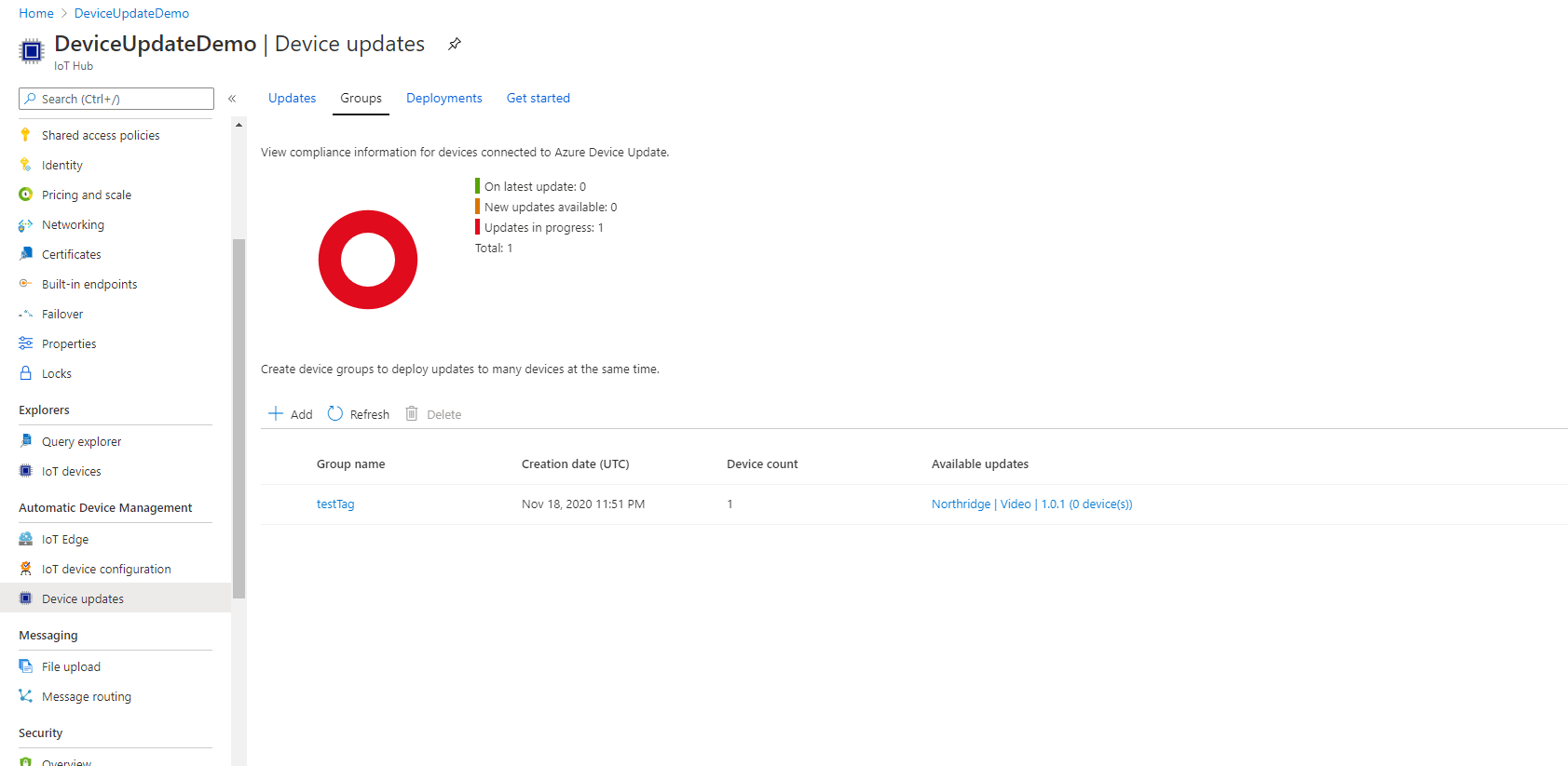 Passare al riquadro Aggiornamento dispositivi dell'istanza dell'hub IoT.