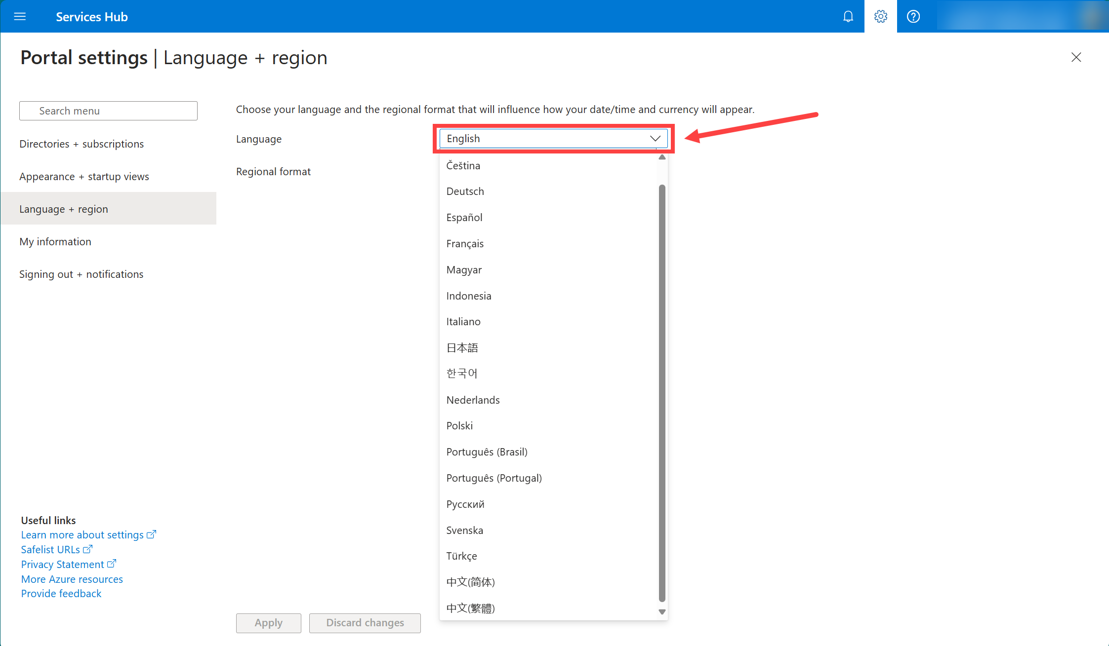 È possibile visualizzare il processo di creazione delle richieste di supporto self-help avanzato nella lingua locale (se supportato) passando alle impostazioni e selezionando la lingua e l'area geografica dai menu a discesa, quindi seguendo i passaggi per aprire una nuova richiesta di supporto.