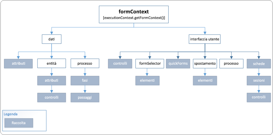 | Schede | Raccolta di tutte le schede della pagina. Per informazioni sugli elementi della raccolta, consultare formContex.ui.tabs. |