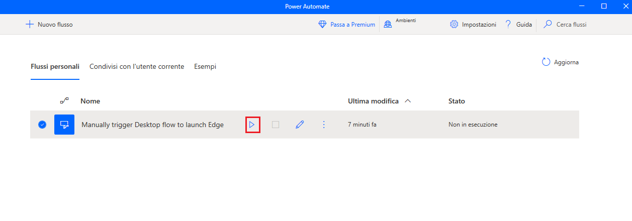 Tornare ai flussi cloud e selezionare il flusso "Attiva manualmente il flusso desktop per avviare Edge" per accedere alla schermata del flusso.