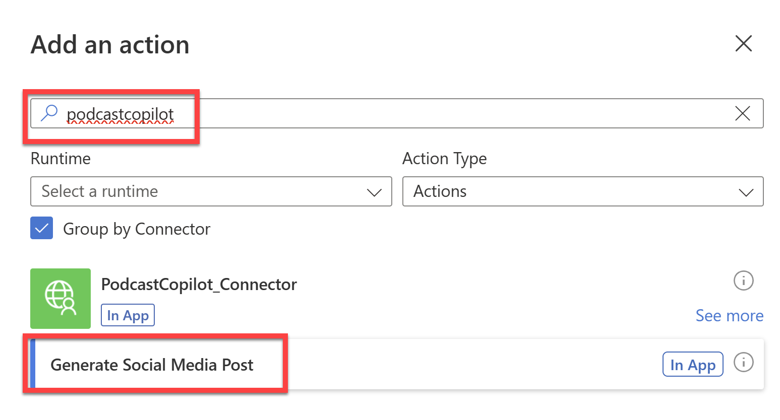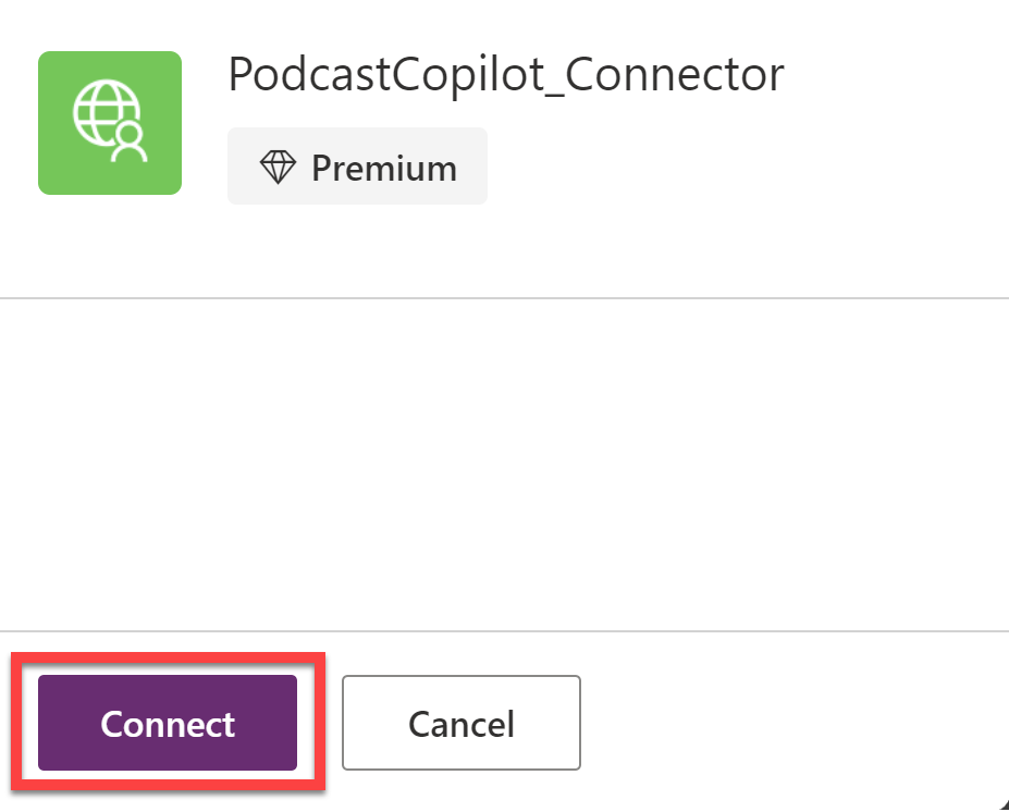 Cercare PodcastCopilot_Connector, quindi selezionare il connettore.