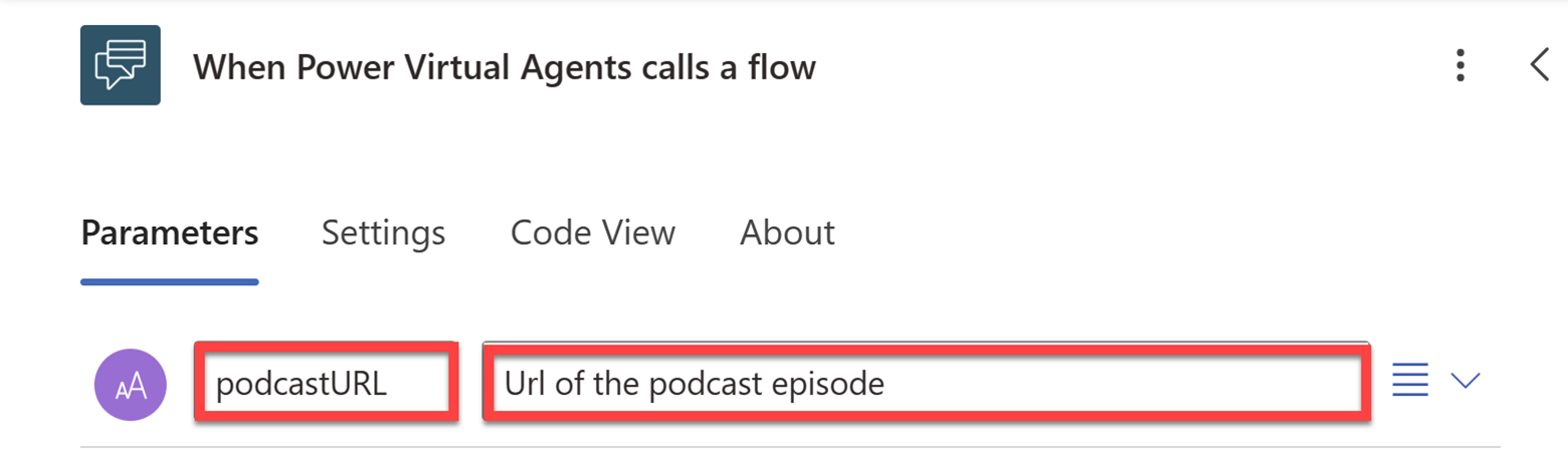 Sostituire Input con podcastURL e sostituire Immettere l'input con l'URL dell'episodio del podcast.