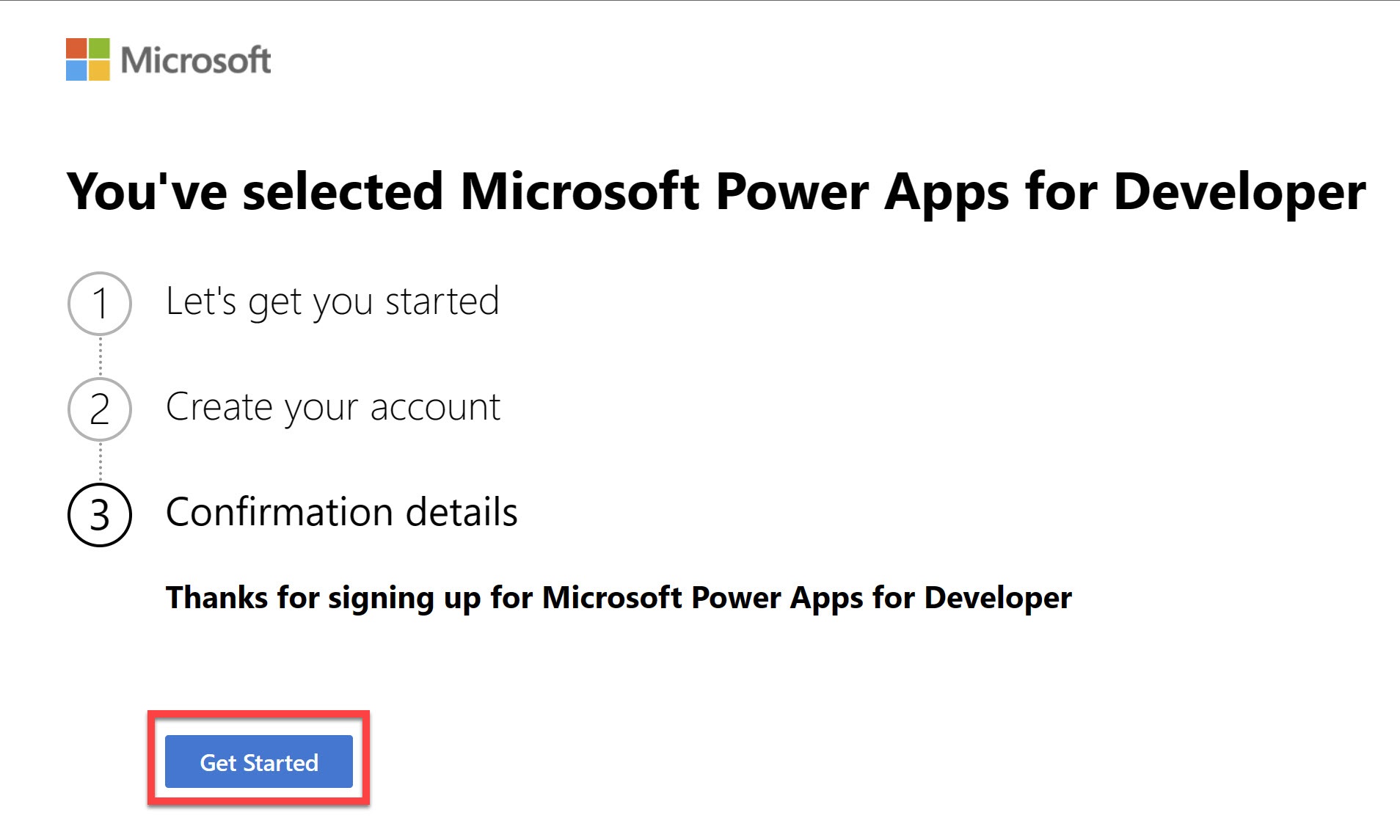 Andare a powerapps.microsoft.com/developerplan.