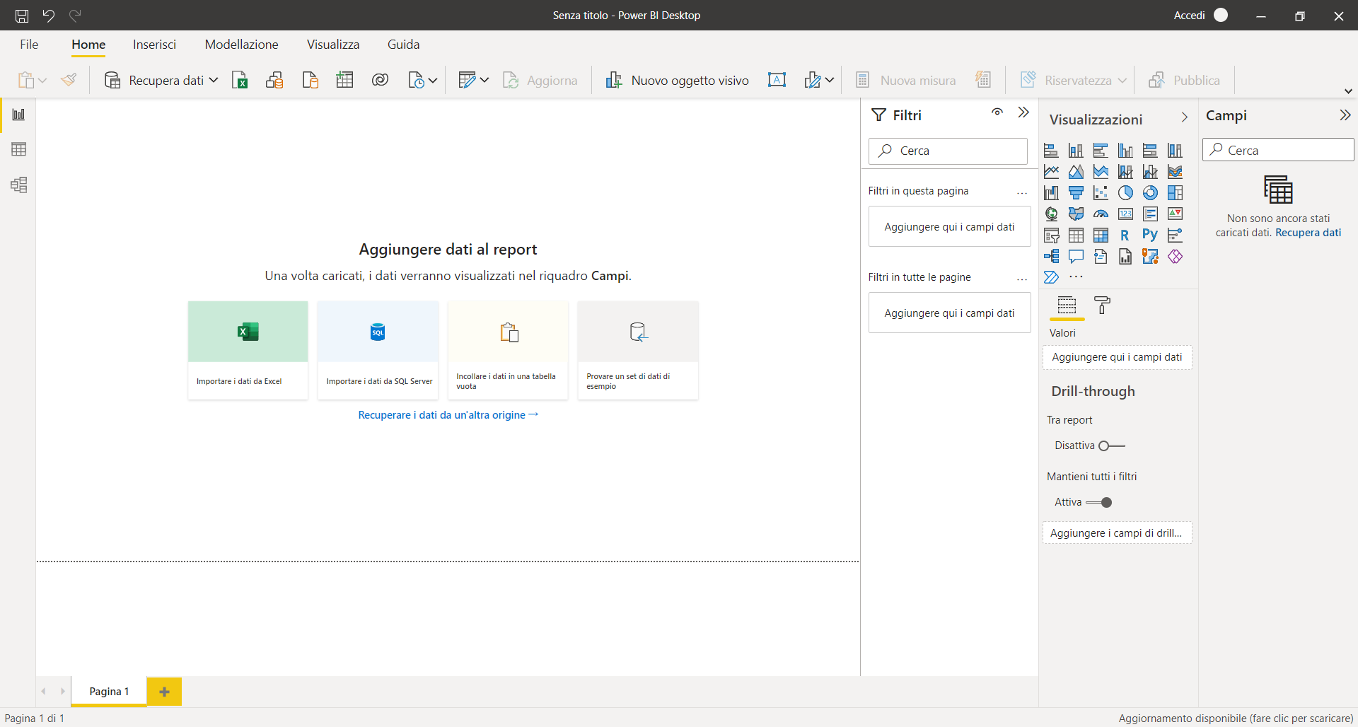 Se si usa questa opzione, è necessario eseguire periodicamente un aggiornamento manuale di Power BI Desktop.