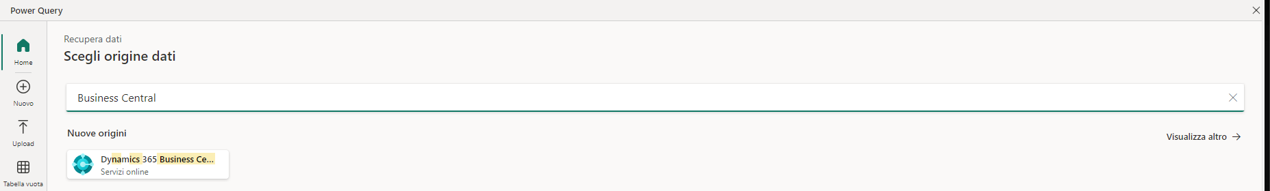 Selezionare Dynamics 365 Business Central come origine dati.