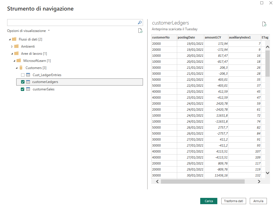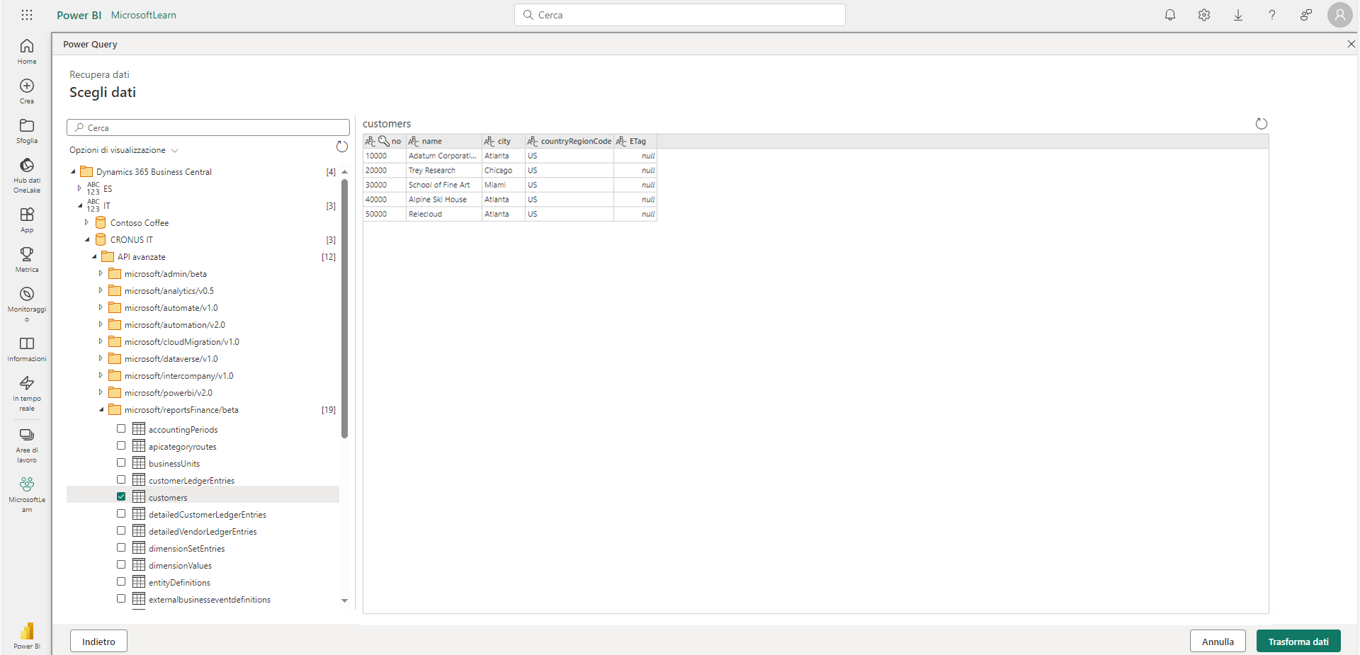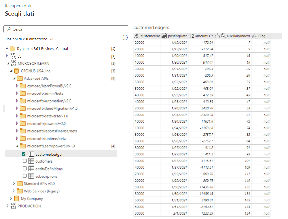 Creazione di un flusso di dati Power BI con dati di Business Central