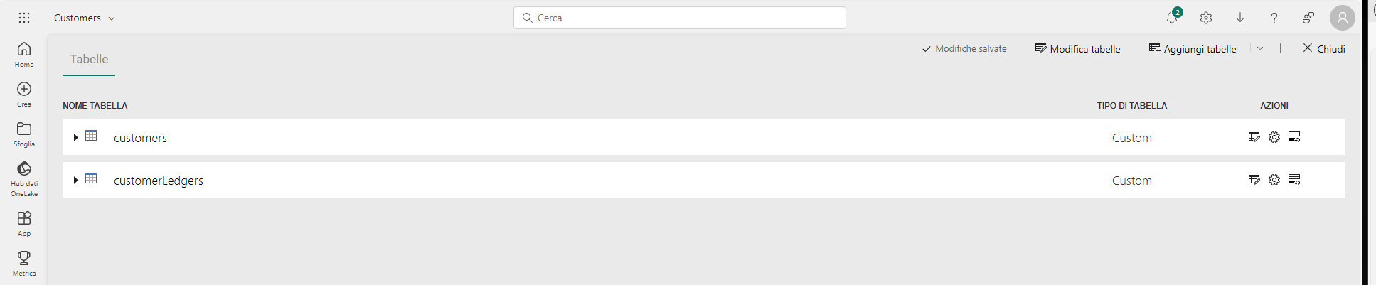 Ora è possibile usare i dati nelle tabelle come per lo sviluppo di qualsiasi altro report di Power BI.