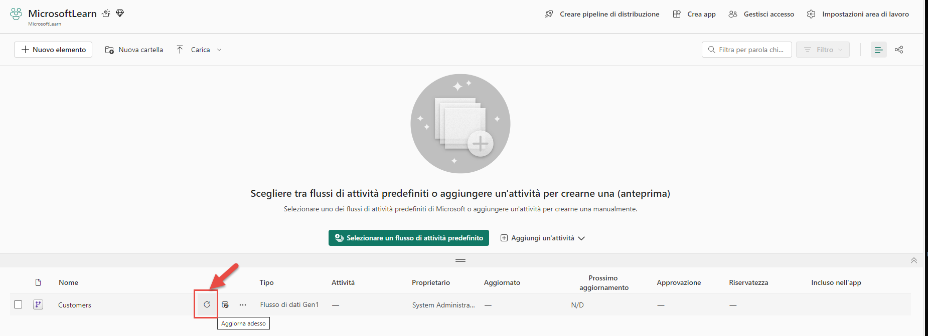 Ora aggiornare il flusso di dati.