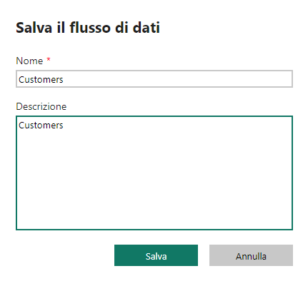 Assegnare un nome al flusso di dati, ad esempio Clienti: