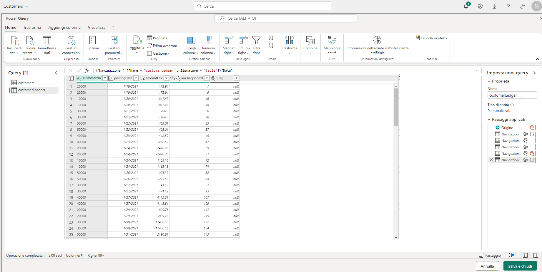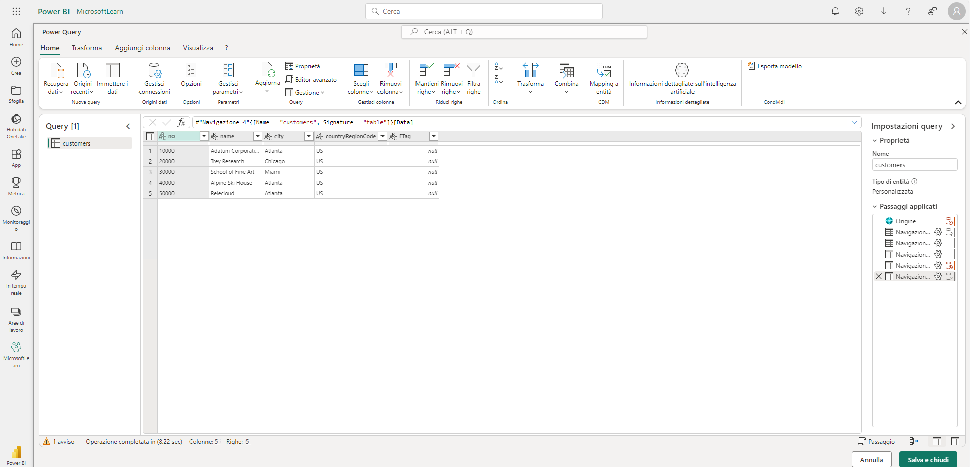 Nella finestra che si apre, è possibile vedere un'interfaccia di Power Query tipica. Qui è possibile, se necessario, eseguire trasformazioni dei dati, applicare filtri, creare nuove colonne e così via.