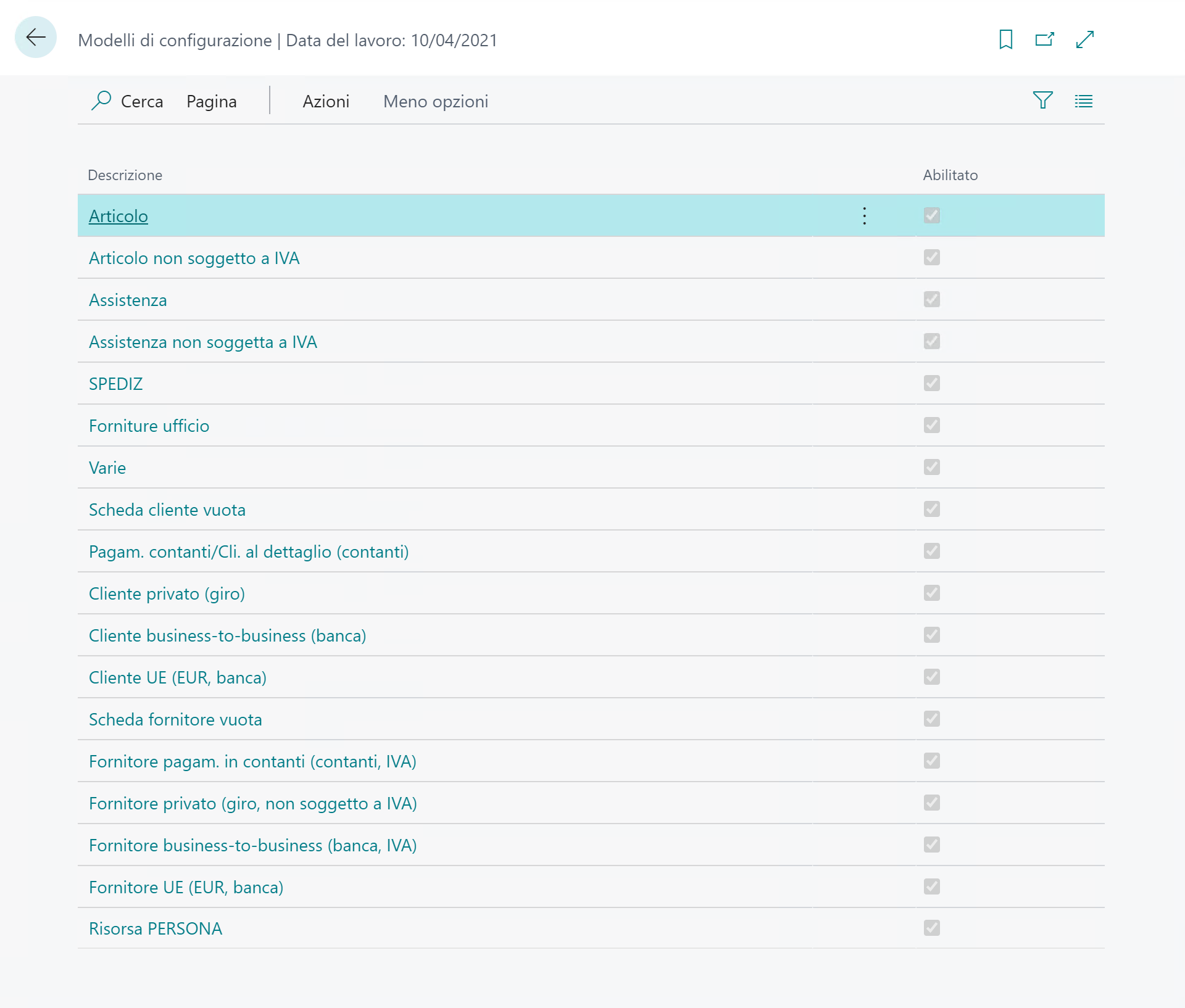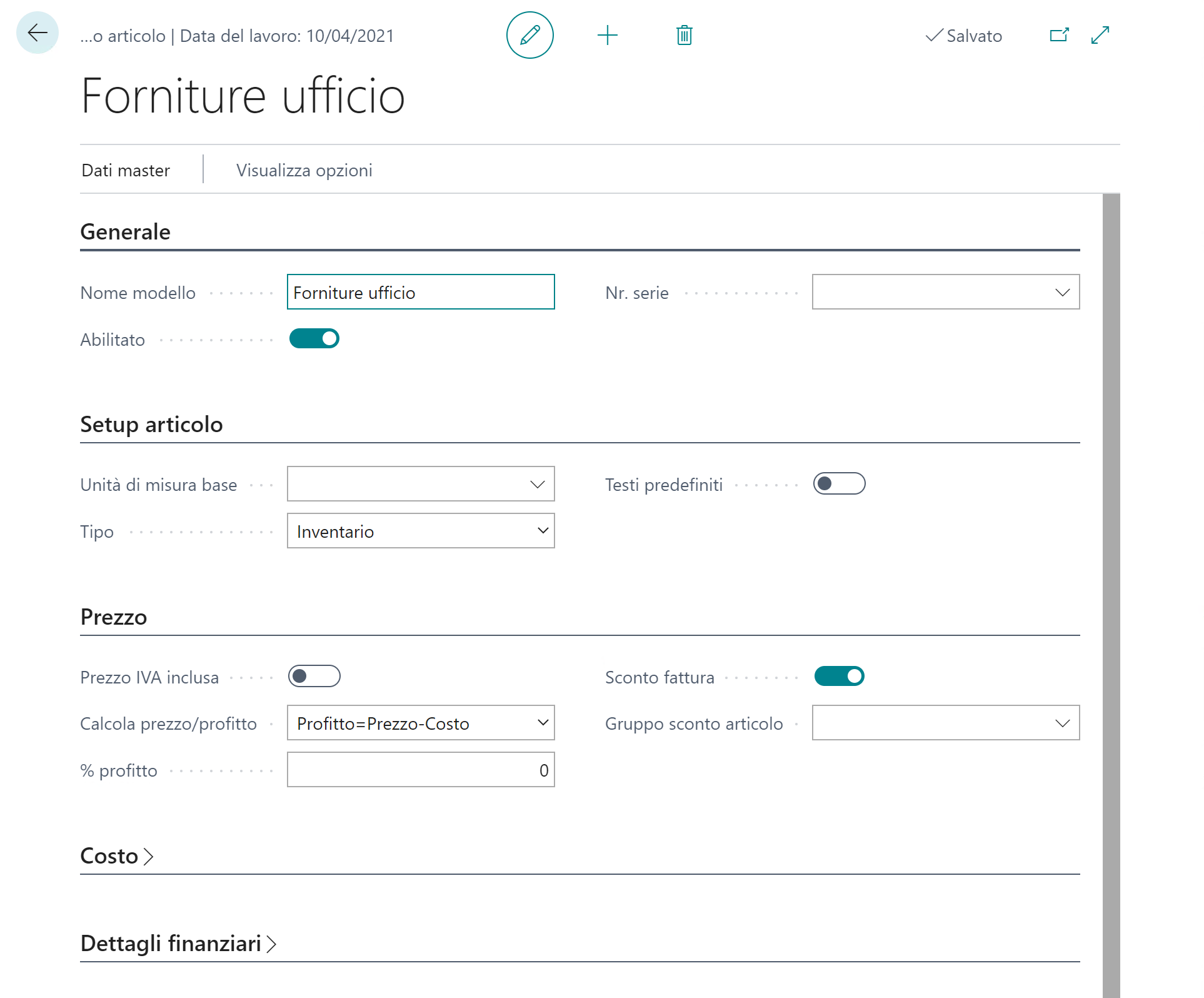 Nella Scheda dettaglio Generale, abilitare il modello.