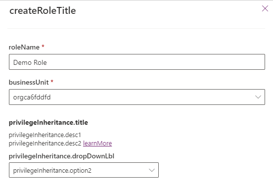 5. Si apre un riquadro Crea nuovo ruolo sul lato destro dello schermo. Aggiungere un Nome ruolo, selezionare una Business Unit, quindi selezionare Salva (è possibile modificare le opzioni di Ereditarietà dei privilegi del membro, ma questo passaggio non è necessario). In questo modo si crea un ruolo con un livello di autorizzazioni minime nell'ambiente. Il passaggio successivo consiste nel fornire a tale ruolo accesso ai dati.