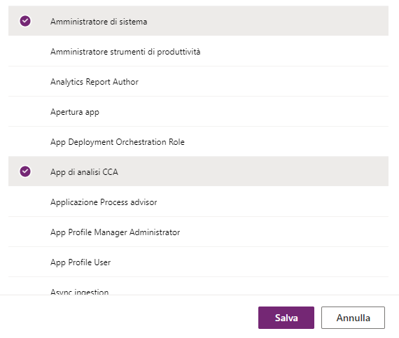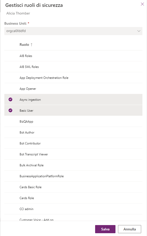 Screenshot di Gestisci ruoli di sicurezza.