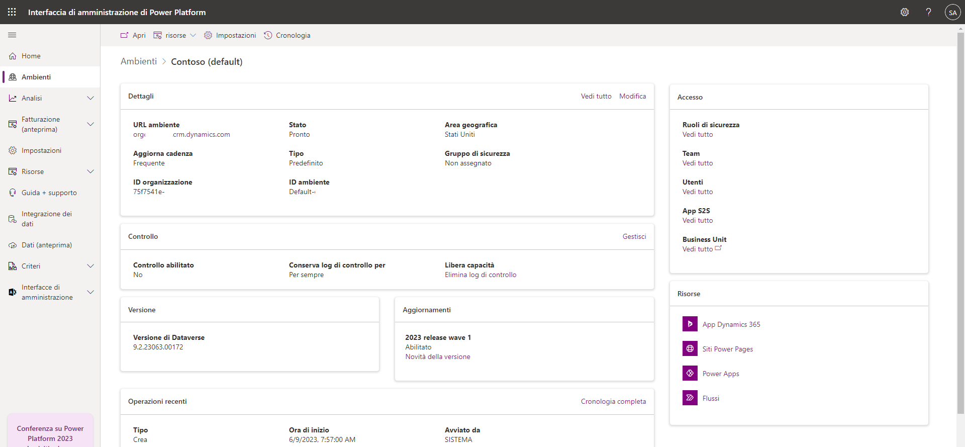 Accedere all'interfaccia di amministrazione di Power Platform.