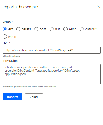 Definire la richiesta HTTP che viene usata per recuperare i dati.