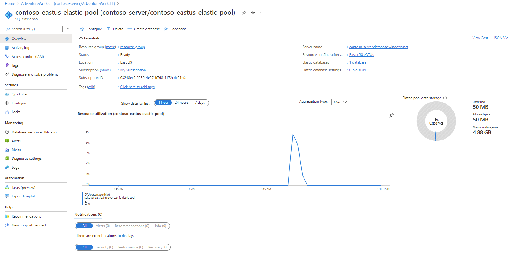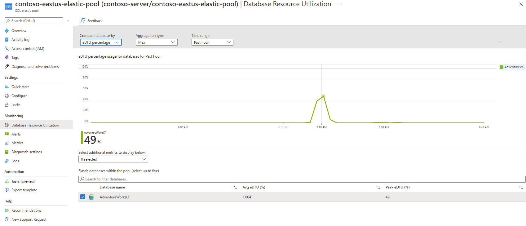 Una delle funzionalità più utili è la possibilità di monitorare l'utilizzo delle risorse del database. Questa funzionalità offre un modo semplice per valutare le prestazioni dei database all'interno del pool.