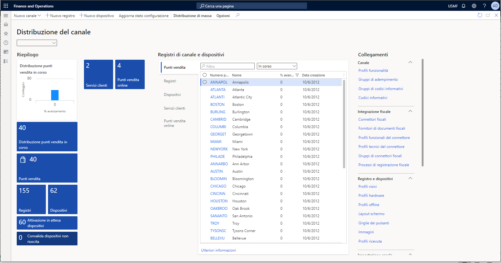 - Canali di vendita al dettaglio: consente di configurare e gestire negozi al dettaglio, servizi clienti e negozi online. Consente inoltre di esaminare e confrontare i rendiconti finanziari del canale.