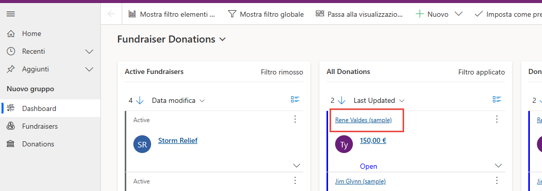 Selezionare Dashboard e aprire uno dei contatti.