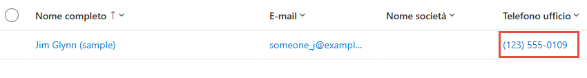 A questo punto, il record dovrebbe essere stato aggiornato e nel campo Telefono ufficio dovrebbero essere visualizzati solo valori numerici.