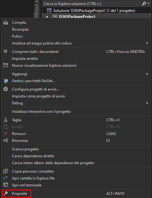 Fare clic con il pulsante destro del mouse sul progetto e selezionare Proprietà.
