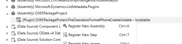 Fare clic con il pulsante destro del mouse sul nuovo plug-in e selezionare Registra nuovo passaggio.