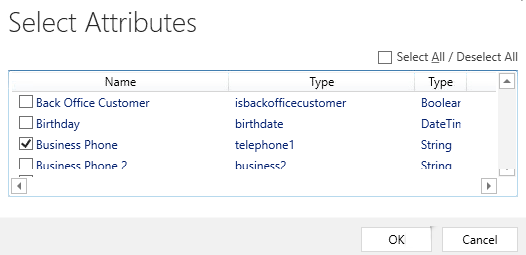 Deselezionare la casella di controllo Seleziona tutto, selezionare la casella di controllo Telefono ufficio, quindi selezionare OK.
