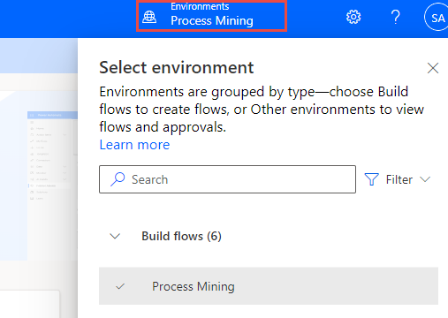 Accedere a Microsoft Power Automate e selezionare l'ambiente corretto.