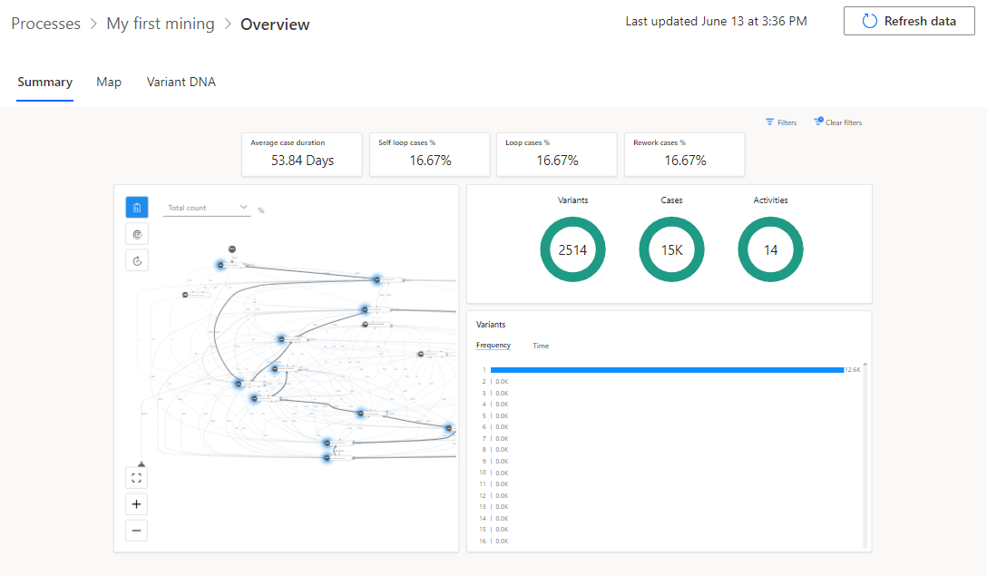 Una volta completata l'analisi, la panoramica del processo dovrebbe risultare simile all'immagine seguente.