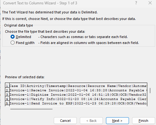 L'attività richiesta per questo esercizio consiste nel creare un nuovo progetto di mining dei processi da un set di dati ricevuto in formato CSV.
