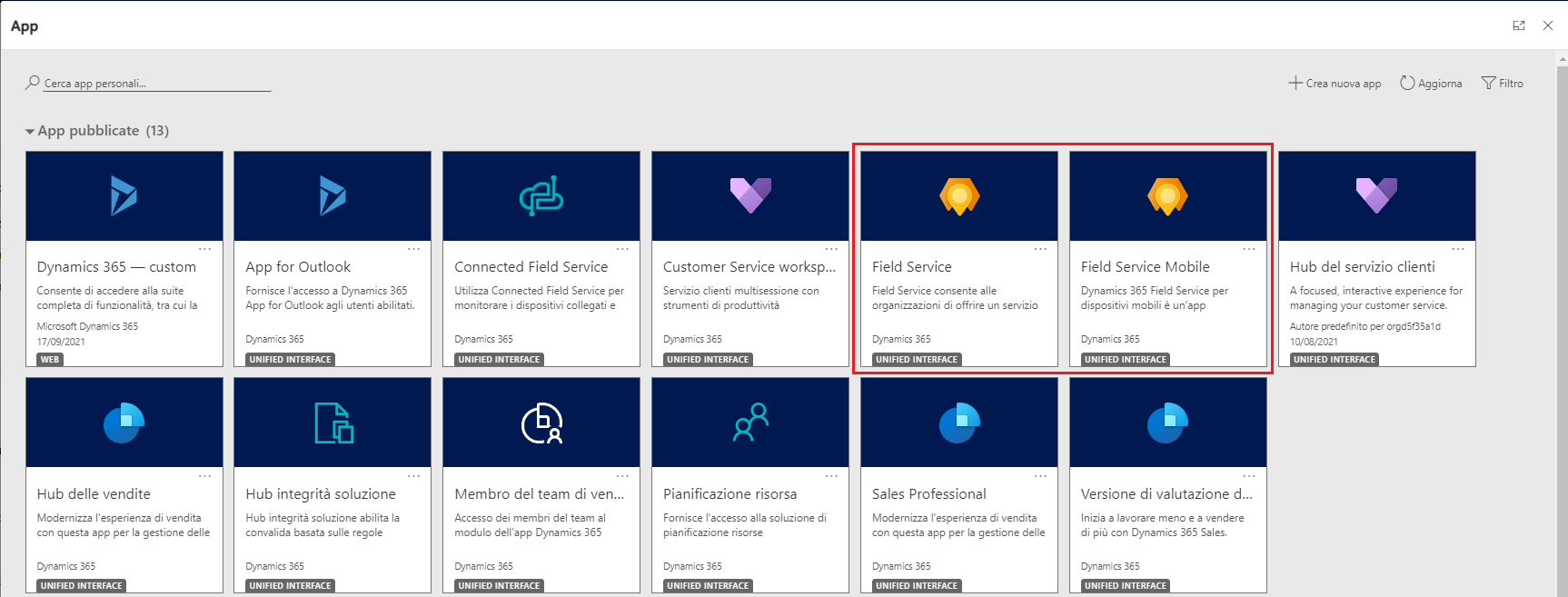 Assicurarsi che i ruoli Field Service - Risorsa e Field Service - Amministratore siano assegnati all'app.