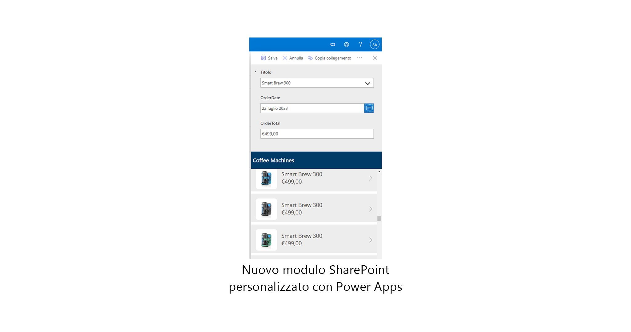 Moduli personalizzati: è possibile usare Power Apps per creare moduli personalizzati per elenchi e raccolte SharePoint, fornendo un'interfaccia più intuitiva e su misura per l'immissione e la manipolazione dei dati.