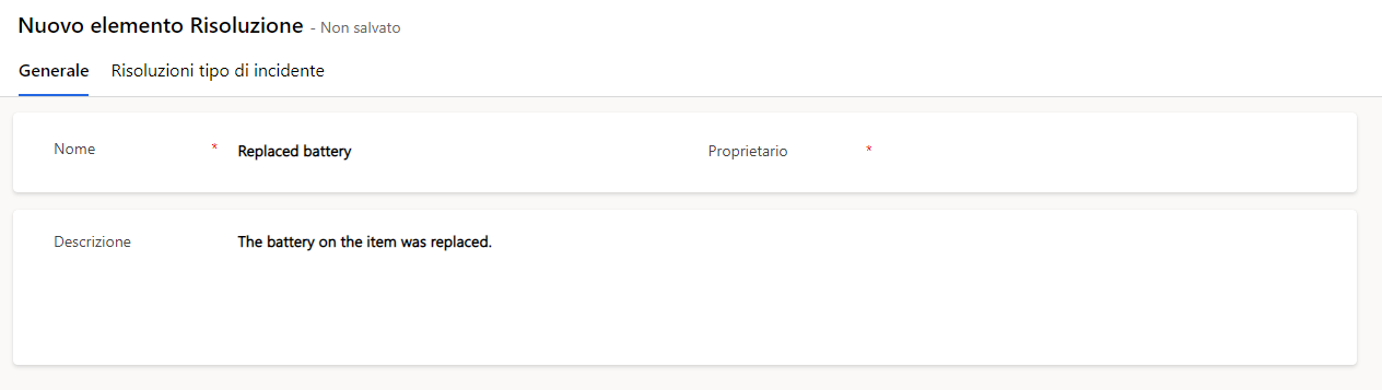 È possibile impostare le risoluzioni per l'ordine di lavoro o associarle a tipi di incidente. Un tecnico può contrassegnare una o più risoluzioni per l'ordine di lavoro.