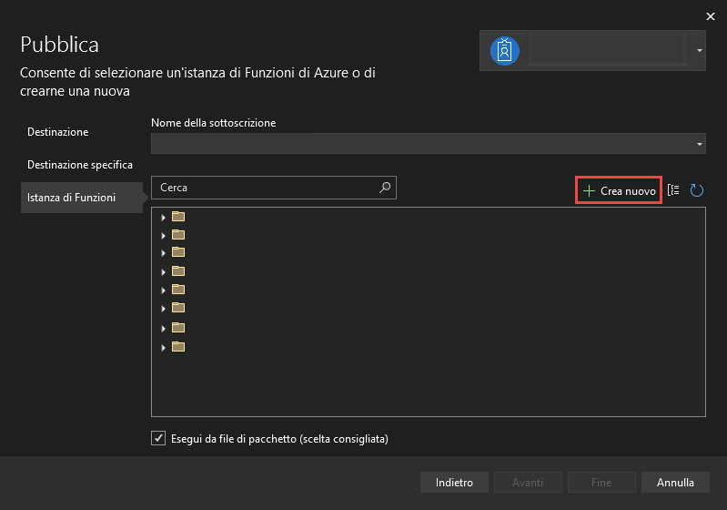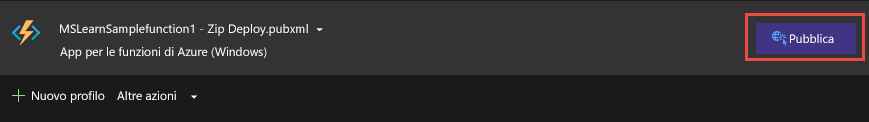 Pubblicazione di una funzione di Azure in Azure