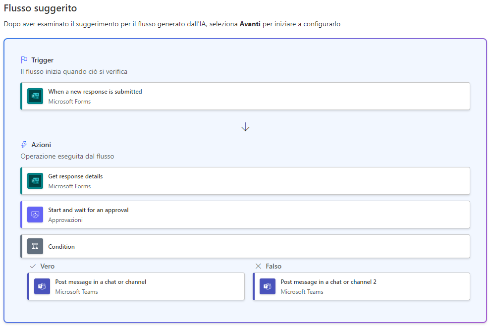 Come si può notare, Copilot ha compreso il desiderio di avvisare il richiedente se l'approvazione viene negata e ha modificato il flusso originale per tenere conto di tale richiesta.