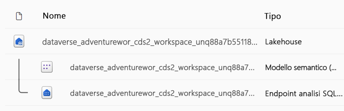 Quando il sistema stabilisce il collegamento, crea un lakehouse nell'area di lavoro fornita. Il nome del lakehouse è univoco e viene generato dal sistema in base a una combinazione di fattori. Il sistema genera i due endpoint seguenti dal lakehouse: