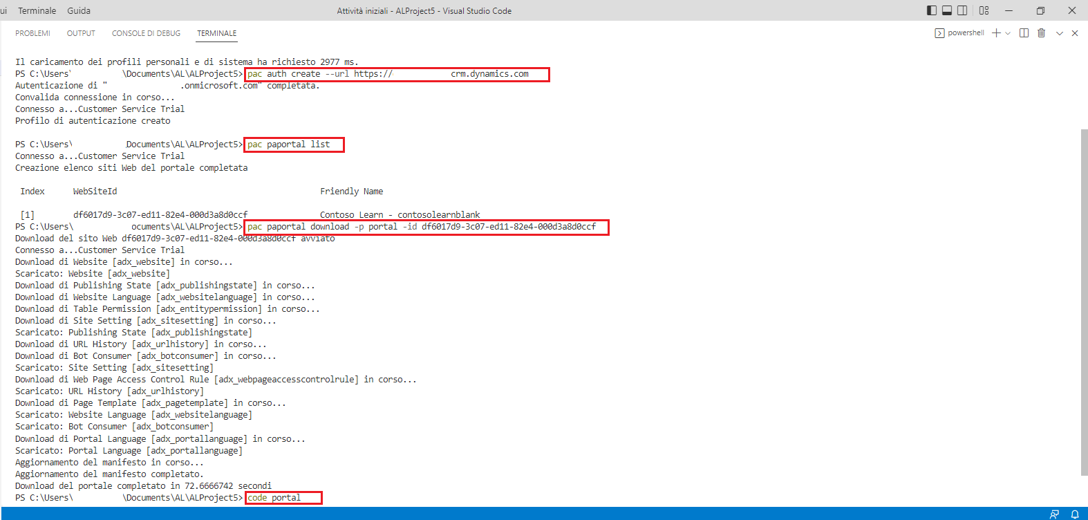 pac paportal download -p portal -id paste-websiteid-hereper avviare il download dei dati del sito Web nella cartella Portal.Immettere