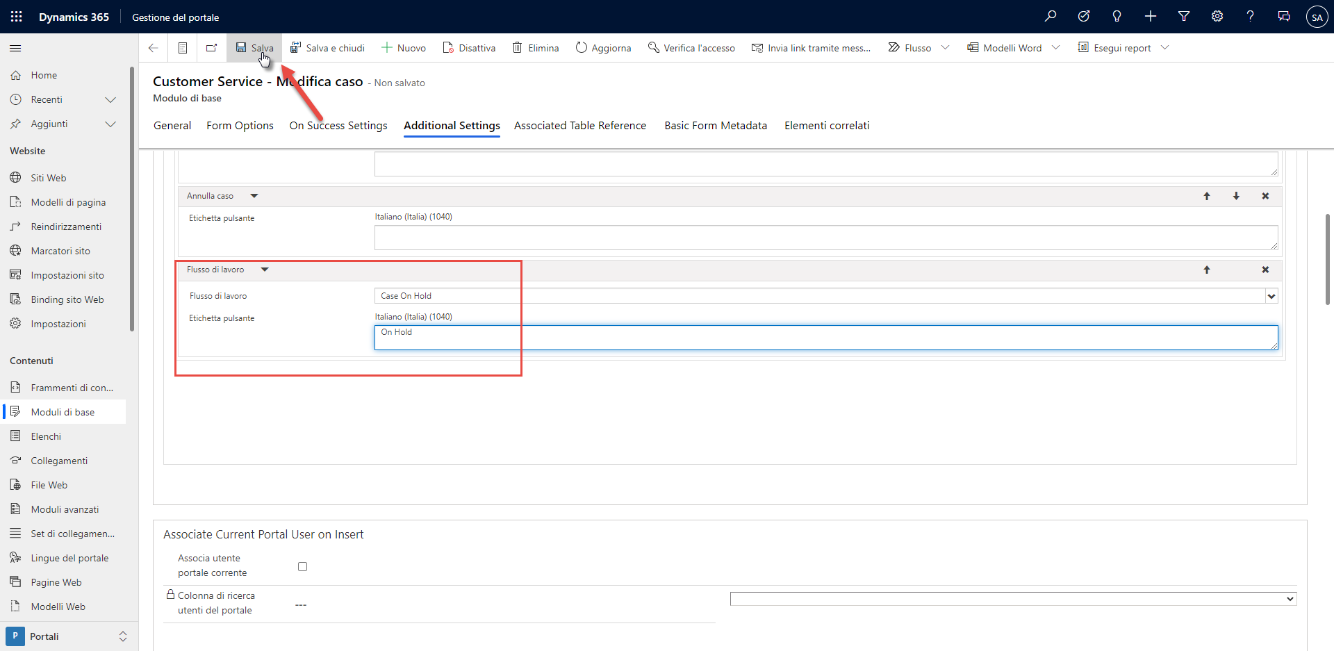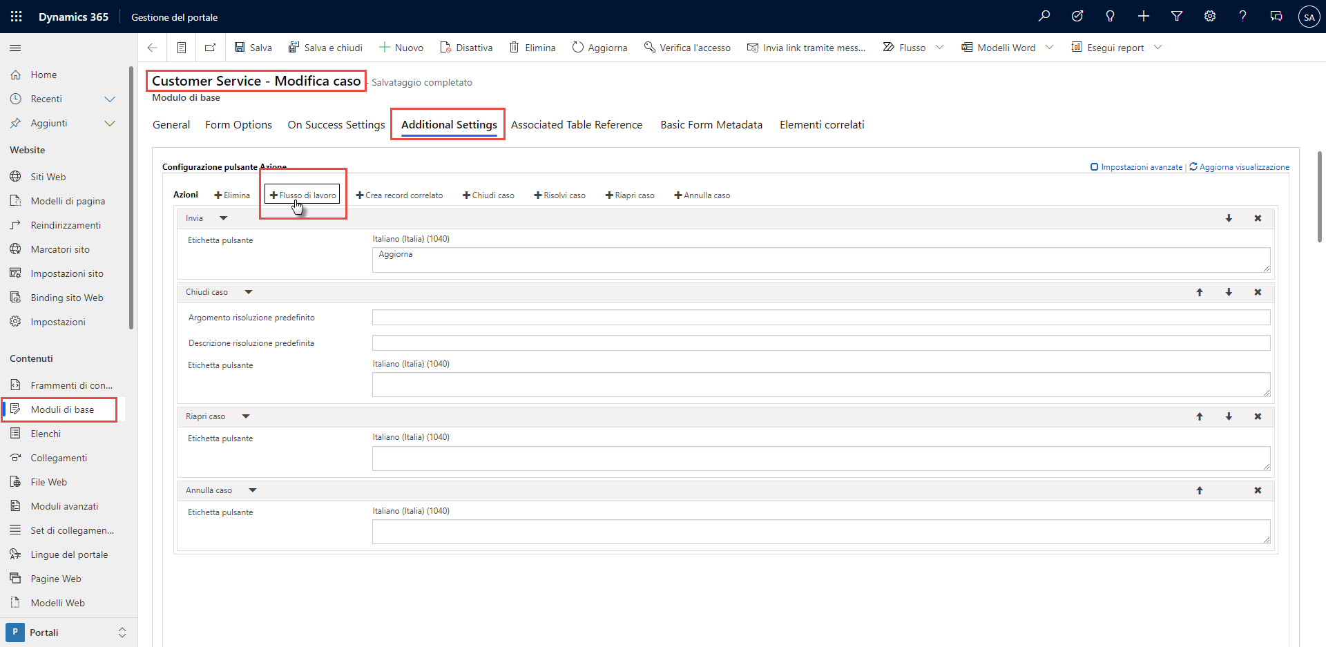 Impostare una nuova azione flusso di lavoro per moduli di base.